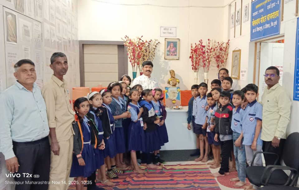शिक्रापूर प्रतिनिधी: येथील ग्रामपंचायतच्या शासनमान्य भैरवनाथ मोफत वाचनालयाच्या वतीने आज (१४ नोव्हेंबर) पंडित जवाहरलाल नेहरू यांची जयंती आणि बालदिन उत्साहात साजरा करण्यात आला. कार्यक्रमाचे उद्घाटन आदर्श सरपंच रमेशराव गडदे, प्रभारी ग्रामपंचायत अधिकारी श्री नंदकुमार वैद्य,जि. प. प्राथमिक शाळा शिक्षक श्री.चेतन कुर्रेवार गुरुजी यांच्या हस्ते झाले.