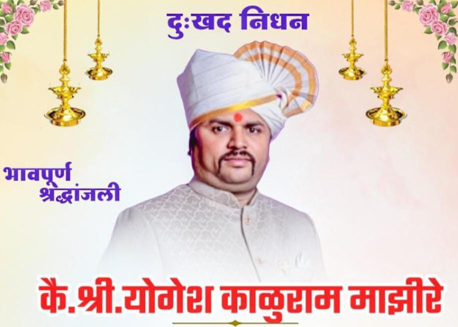 पुणे, ता.१४ : भुकूम (ता.मुळशी) येथील युवा उद्योजक योगेश (आबा) काळुराम माझीरे (वय ३६) यांचे ह्रदय विकाराने नुकतेच निधन झाले आहे. त्यांच्या पश्चात आई, वडील, पत्नी,एक मुलगा, एक मुलगी, तीन बहिणी असा परिवार आहे. मांजरी खुर्दच्या माजी उपसरपंच सुनिता अशोक आव्हाळे यांचे बंधू, दैनिक पुण्यनगरीचे पत्रकार अशोक आव्हाळे यांचे ते मेव्हणे होत.