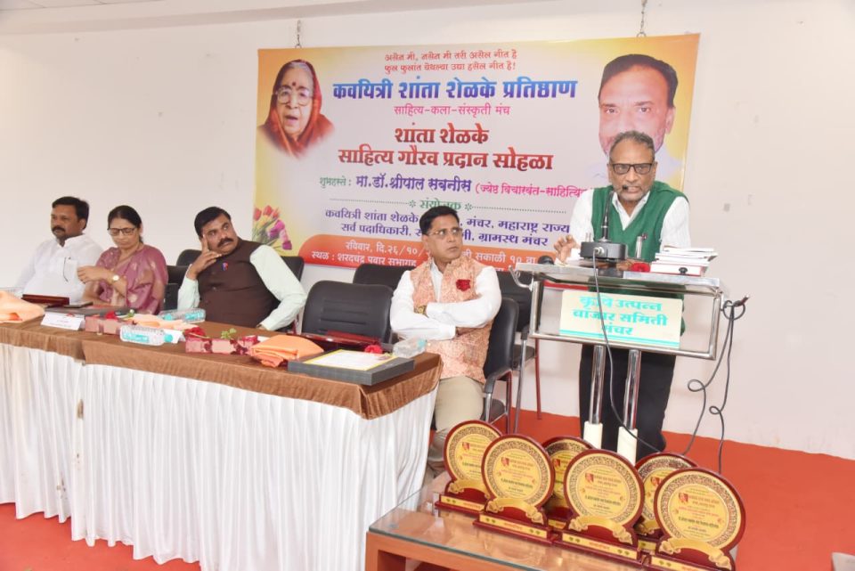 समाज व संस्कृतीच्या शुद्धीकरणासाठी साहित्यिक कलावंतांचे योगदान महत्वाचे असते. त्यावरच समाज विकास अवलंबून असतो. लेखक कवी सांस्कृतिक लोकशाही समृद्ध करतात. शांताबाई शेळके यांनी त्यांच्या बहुआयामी कर्तुत्वाने साहित्य कलेत सुगंध पेरला. त्यांची बहुसांस्कृतिक पुण्याई जगवण्याचा प्रयत्न शांत शेळके प्रतिष्ठान व प्रतिष्ठानचे अध्यक्ष दत्ताजी पायमोडे करत आहेत. संस्कृतीच्या जागरणातून शुद्ध प्रबोधन होत असते. असे विचार डॉ श्रीपाल सबनीस यांनी येथील शांता शेळके प्रतिष्ठानच्या साहित्य गौरव पुरस्कार प्रदान सोहळ्यात व्यक्त केले. डॉ श्रीपाल सबनीस पुढे म्हणाले महाराष्ट्राचा सांस्कृतिक नकाशा शांताबाईच्या काव्य कर्तुत्वाने प्रभावित आहे. त्यांची गोड अवीट गाणी मराठी मनात घर करून बसली आहेत. नव्या लेखकांनी त्यांचा वारसा समृद्ध करावा. शांता शेळके संस्कृतीच्या आदर्श नायिका आहेत.